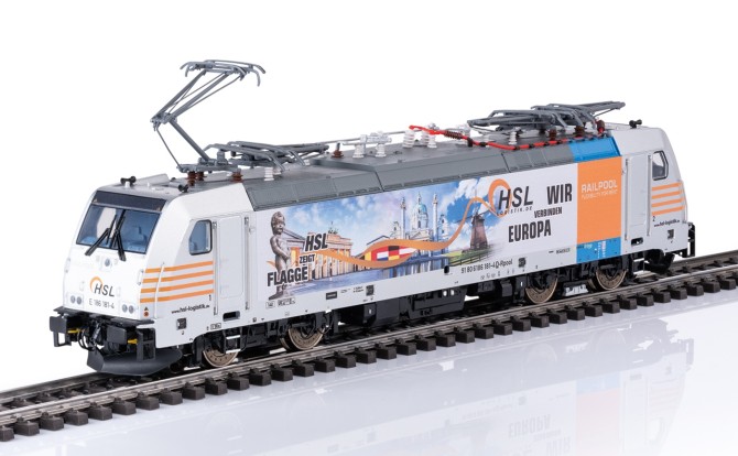 Nachdem die 186er bisher im Märklin Programm nur als einfacheres Start-Up vorhanden war, kommt nun ein zeitgemäßes und hochdetailliertes Modell ins Programm. Sowohl die Ausstattung unter der Lok, als auch auf dem Dach der Lok entspricht exakt dem jeweiligen Vorbild. Die jeweils unterschiedlichen Pantografen (Länderversionen) wurden entwickelt und sind äußerst fein ausgeführt. Die Seitenwände sind den Vorbild entsprechend teilweise profiliert und weisen alle Öffnungen und Armaturen dieser Generation der 186er auf. Drehgestelle und Radscheiben sind filigran detailliert. Viele separat angesetzte Teile wie Griffstangen, Sandkästen, Scheibenwischer, UIC-Steckdosen und alle Dachleitungen geben dem Modell einen hochwertigen Charakter. Die funktionale Ausstattung lässt ebenfalls keine Wünsche offen. Neben den originalen Geräuschfunktionen besitzen die unterschiedlichen Modelle dem Vorbild angepasste Lichtfunktionen. So sind z.B. die jeweiligen Lichtbilder der Einsatzländer nachstellbar. Der Führerstand und das Fahrpult können separat beleuchtet werden. Um kurze Stromlose Stellen auf der Anlage zu kompensieren besitzt das Modell einen einstellbaren Pufferkondensator. So kann das Modell per CV-Mapping exakt auf die elektronischen Gegebenheiten auf der Anlage konfiguriert werden. Die ersten Modelle sind 186 339-8 der DB AG, die 186 181-4 der HSL und die 186 310-9 der Euro Cargo Rail (EWS).